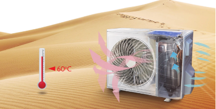 Και αν η θερμοκρασία έξω χτυπάει 50℃, δεν υπάρχει πρόβλημα! Το κλιματιστικό σου θα συνεχίσει να ψύχει με την ίδια απόδοση, και σε θερμοκρασίες 60℃, ενώ άλλα κλιματιστικά θα τα είχαν παρατήσει.